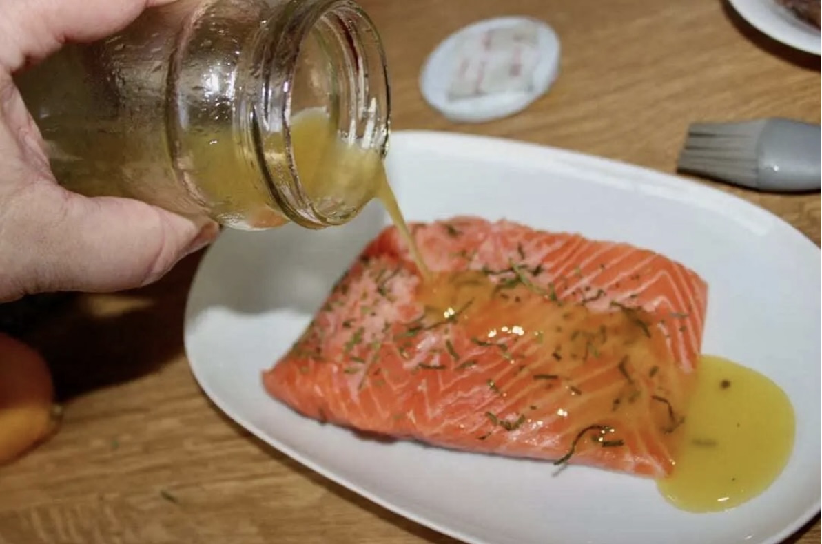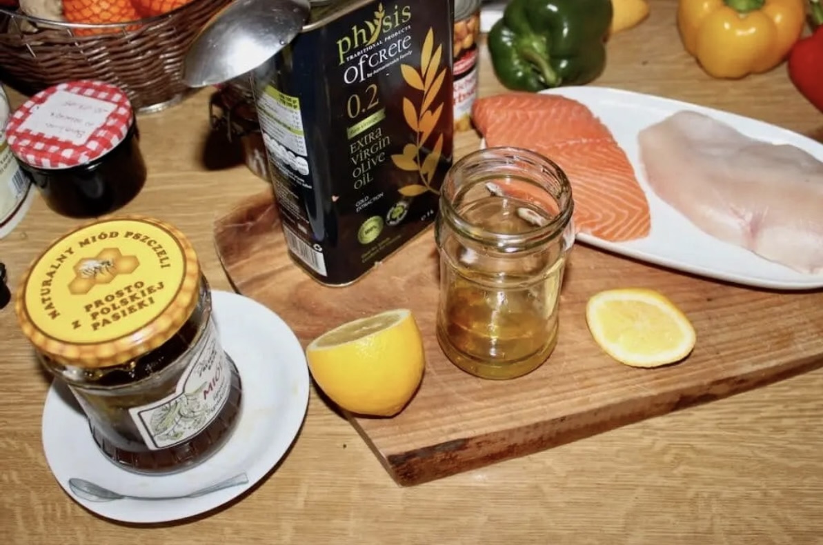 Marynata do ryby: 2 łyżki oliwy extra vergine, 2 łyżki soku z cytryny, 1 łyżka miodu