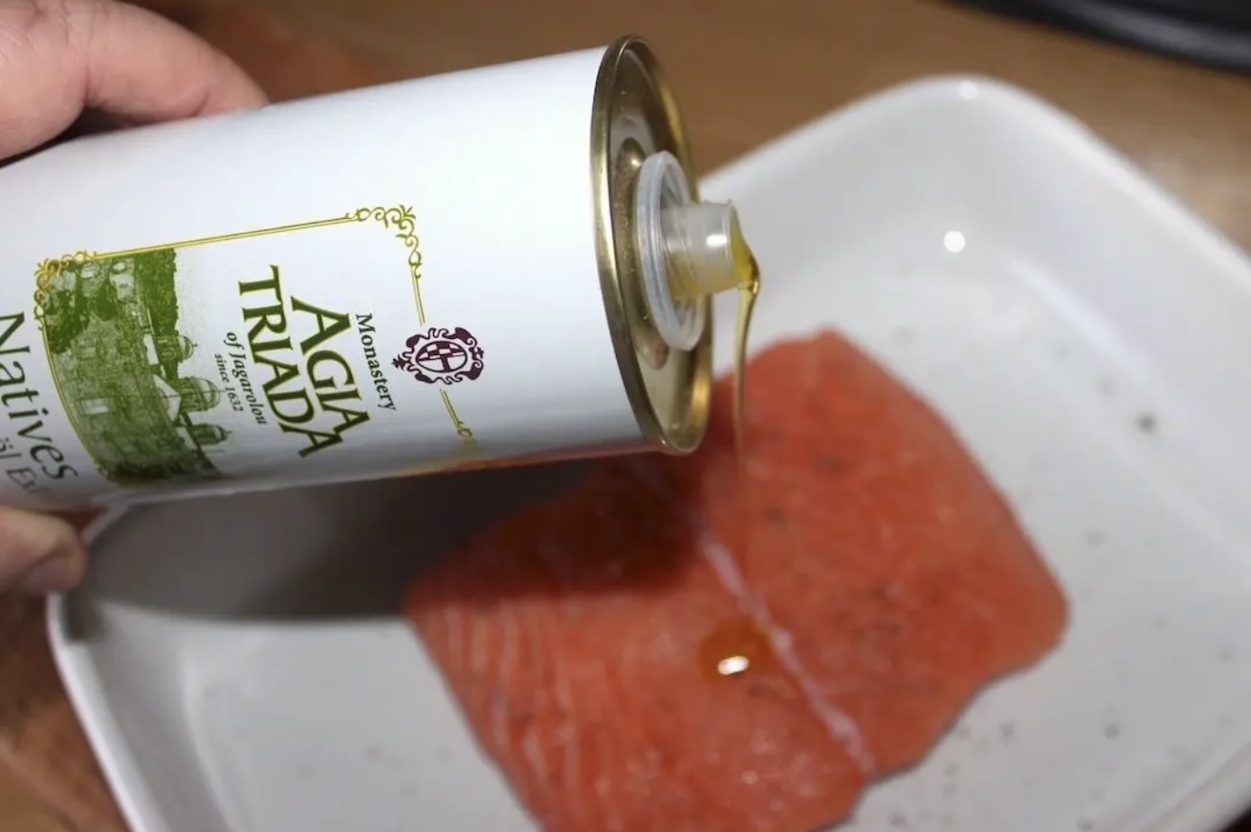 Przyprawianie: Oprósz rybę solą oraz świeżo zmielonym pieprzem. Następnie skrop ją dobrej jakości oliwą z oliwek (nie przesadzaj z ilością, łosoś jest tłustą rybą).
