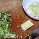 Na drugiej patelni rozgrzej odrobinę tłuszczu, a następnie krótko podsmaż posiekany czosnek.