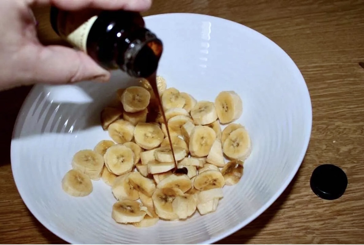 Banany obierz, a następnie pokrój na drobne kawałki w misce.