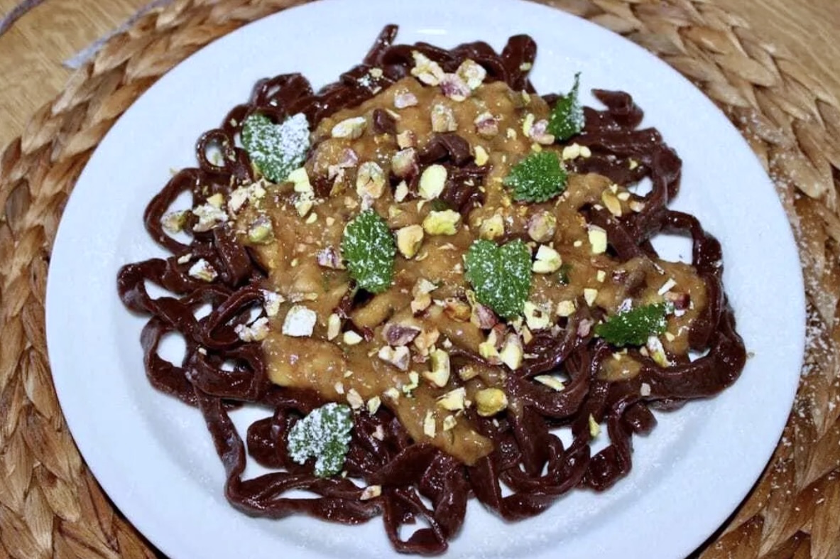 Makaron czekoladowy to bardzo ciekawe danie. Smaczne, bardzo smaczne. Oczywiście o ile lubisz dania makaronowe na słodko. Ciasto makaronowe jest bardzo proste do wykonania, jednak należy pamiętać, aby je bardzo cienko rozwałkować, bo w w czasie gotowania makaron spęcznieje. Mus bananowy dobrze jest wykonać z bardzo dojrzałych bananów, takich, których godziny już są policzone. Mnie udało się kupić prawdziwe, małe banany z Ameryki Południowej w promocji w jednych z delikatesów. I powiem szczerze, że teraz wiem, jak smakuje naprawdę banan. Z takimi bananami Twój makaron czekoladowy z musem bananowym smakować będzie pierwszorzędnie