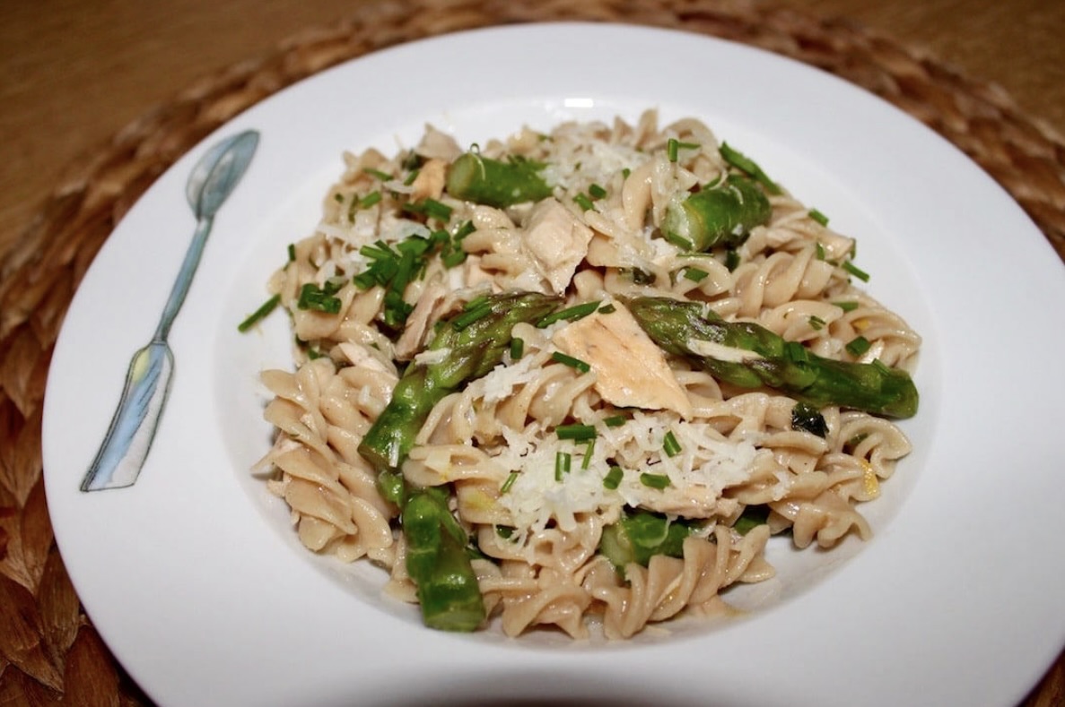 Makaron razowy z tuńczykiem to świetne danie dla każdego i na każdą porę roku. W zależności od niej możesz zastosować inne, sezonowe warzywo. Danie jest pożywne, ale również lekkostrawne dzięki dodaniu do niego świeżych szparagów. Użyłem makaronu razowego gotowanego „al dente”, dzięki czemu danie ma stosunkowo niski indeks glikemiczny. Danie nadaje się zatem również dla diabetyków. Ważnym jest w tym daniu, aby wybrać taki makaron, by móc pokroić warzywa w podobny kształt. Dzięki temu całość będzie wyglądała efektownie na talerzu. Sok z cytryny dodaj w takiej ilości, aby podkreślił smak dania. Jeśli użyjesz go zbyt dużo danie będzie za kwaśne. Dodawaj go zatem z wyczuciem.