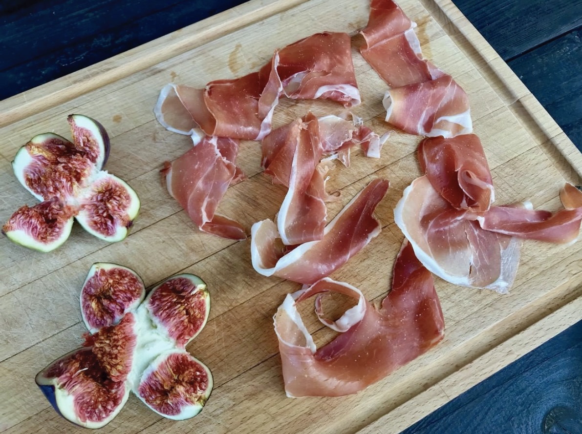Szynkę dojrzewającą wyjmij z lodówki minimum 30 minut przed podaniem, aby nabrała temperatury pokojowej (wtedy smakuje najlepiej). Figi również trzymaj poza lodówką.