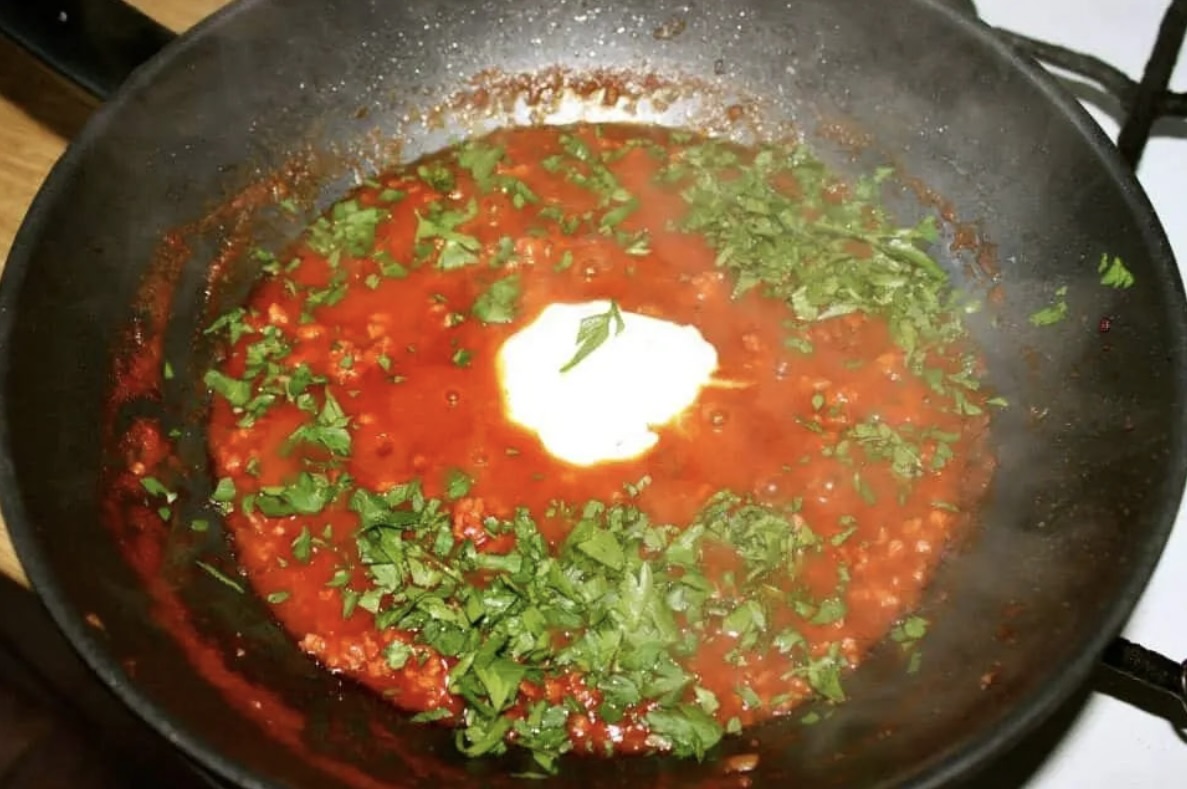 Sos: 200 ml przecieru pomidorowego, 1 szklanka bulionu wołowego, 1 łyżka kwaśnej śmietany