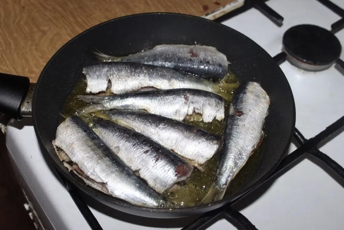 Na patelni rozgrzej sporą ilość oliwy. Smaż sardynki przez maksymalnie 2 minuty z każdej strony.