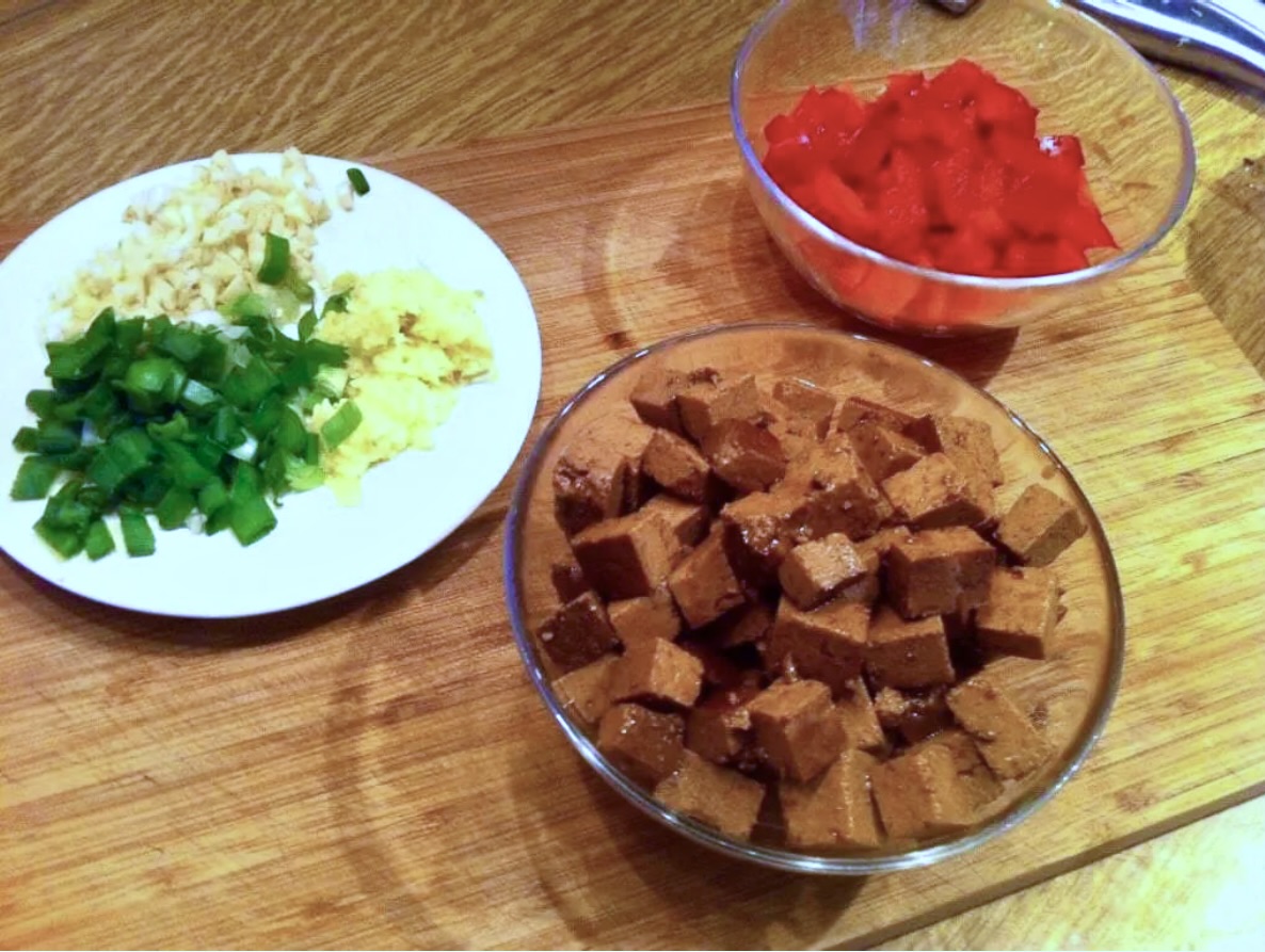 Tofu: 300 g twardego, wędzonego tofu.