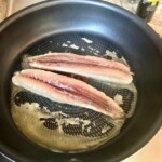 Smażenie makreli: Filety z makreli lekko posól, a następnie delikatnie obsyp mąką. Smaż makrelę na oliwie na średnim ogniu:
