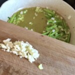 Przygotowanie bazy: Obierz i posiekaj czosnek, a cebulę pokrój w drobną kostkę. Z naci ziół odkrój łodygi i posiekaj je na spore kawałki.