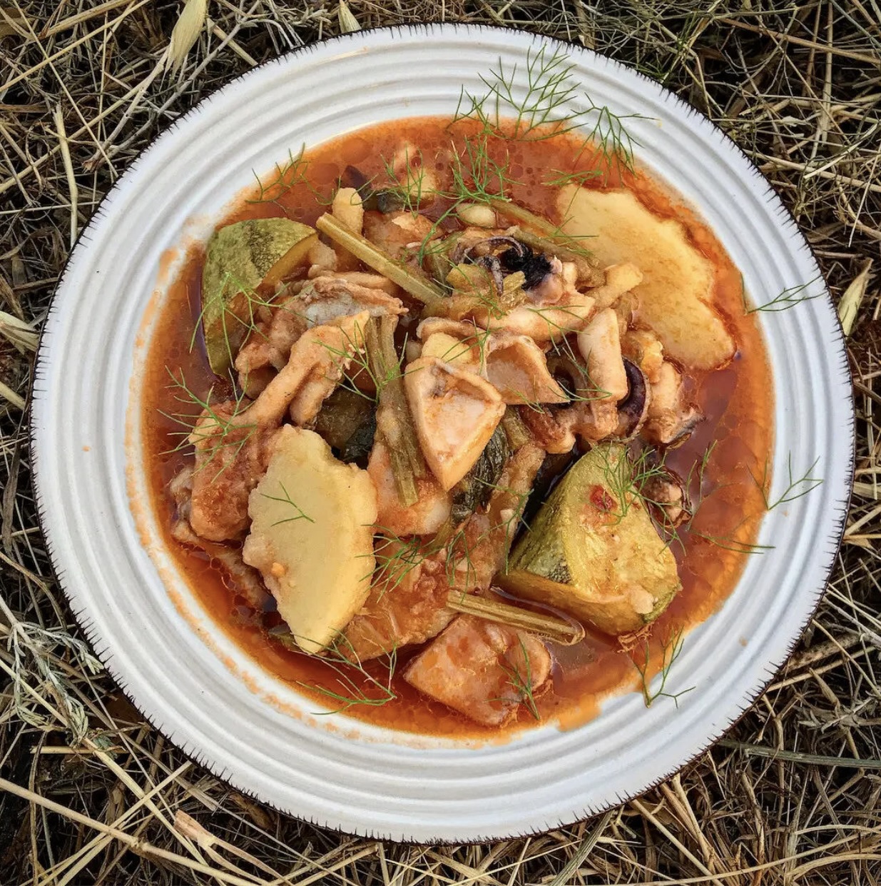 Mątwa krojona i duszona z dodatkiem ziemniaków, cukinii, selera i startych pomidorów. Ten głowonóg przygotowany na sposób grecki to nie lada przysmak, choć na pierwszy rzut oka danie to może wydawać się daniem mało finezyjnym. Mątwa, zwana inaczej sepią (ang. cuttlefish, gr. supia) od powszechnie znanego kalmara różni się owalnym kształtem i jest grubsza. Mięsa i białka jest zatem więcej, ale to właśnie dlatego mątwa potrzebuje dłuższej obróbki cieplnej od kalmara. Dlatego Grecy kalmara grillują, mątwę zaś duszą. Efekt smakowy, uwierz, znakomity.