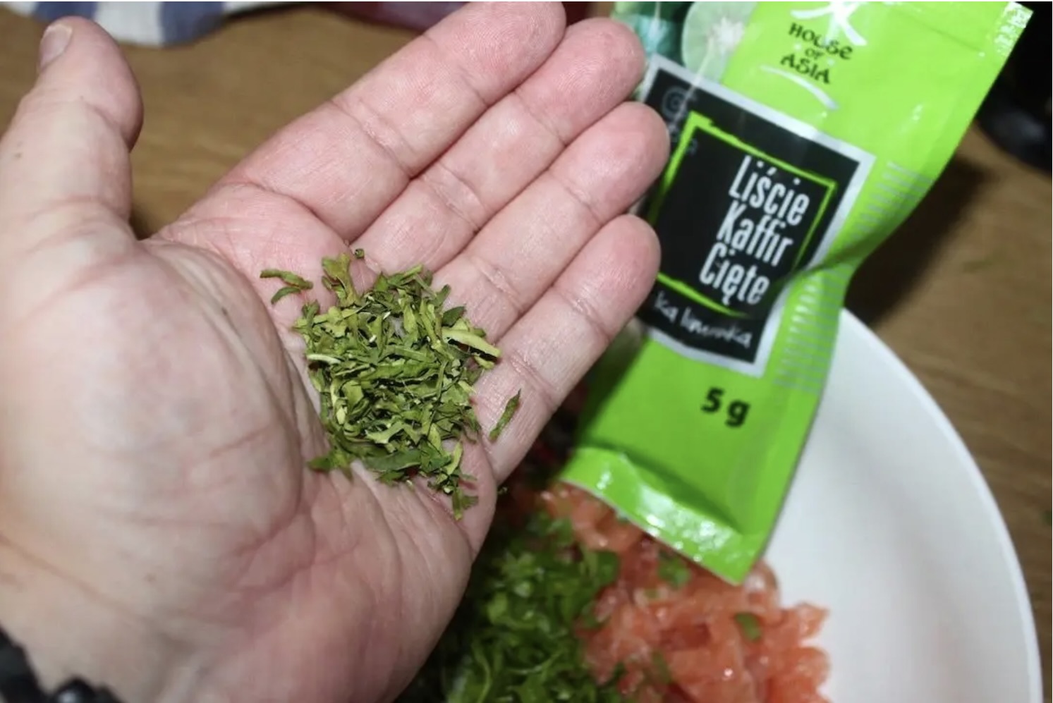 Rozgnieć w dłoni garść suszonych liści limonki kaffir i dodaj do ryby, aby nadać przyjemnego, cytrusowego smaku.