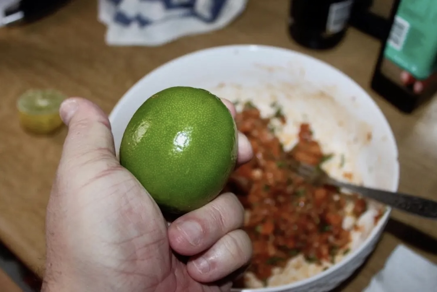 Na koniec wciśnij sok z limonki do ryby i ponownie zamieszaj.