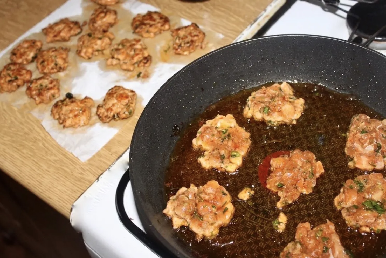 Nabieraj masę najlepiej łyżką stołową i kładź na patelni.