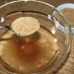 Przygotowanie zalewy: Do nowej miski wlej około 300 ml zimnej wody i wsyp 3 łyżki cukru. Dodaj również około 3 łyżek octu spirytusowego.