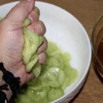Macerowanie: Delikatnie odciśnij ogórki garściami z nadmiaru wody, która puściły dzięki soli. Przełóż odciśnięte ogórki do zalewy octowej.