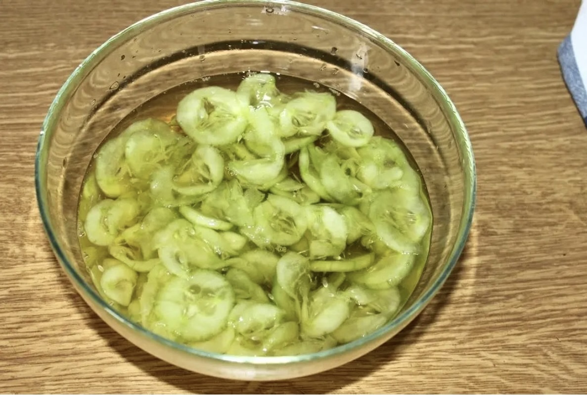 Odstawienie: Odstaw mizerię w zalewie na godzinę, a najlepiej na dłużej, aby ogórki nabrały właściwego smaku.