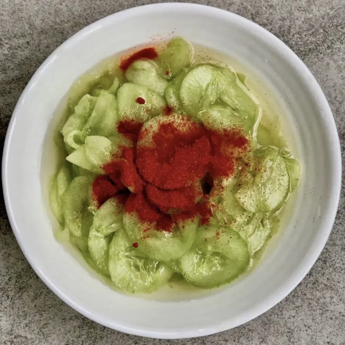 Mizeria po węgiersku to prosta sałatka ze świeżych ogórków macerowanych w zalewie na bazie octu spirytusowego i cukru.