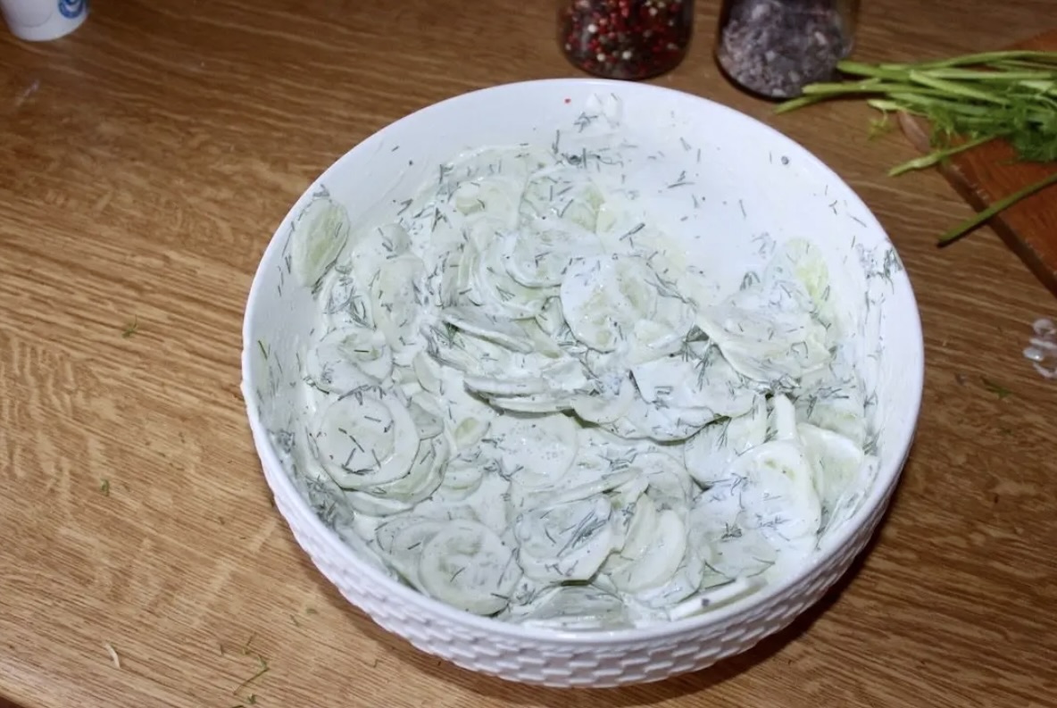 Chłodzenie: Gotową mizerię należy wstawić do lodówki na 30 minut, aby się schłodziła i przegryzła.