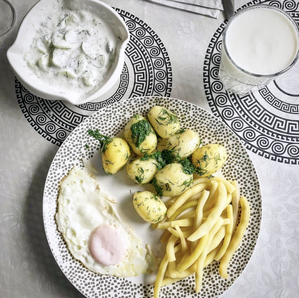 Mizeria ze śmietaną podawaj jako dodatek do obiadu. Idealnie komponuje się z letnimi obiadami warzywnymi, kotletem schabowym, a prawdziwym hitem są sznycle mielone z ziemniakami i mizerią.