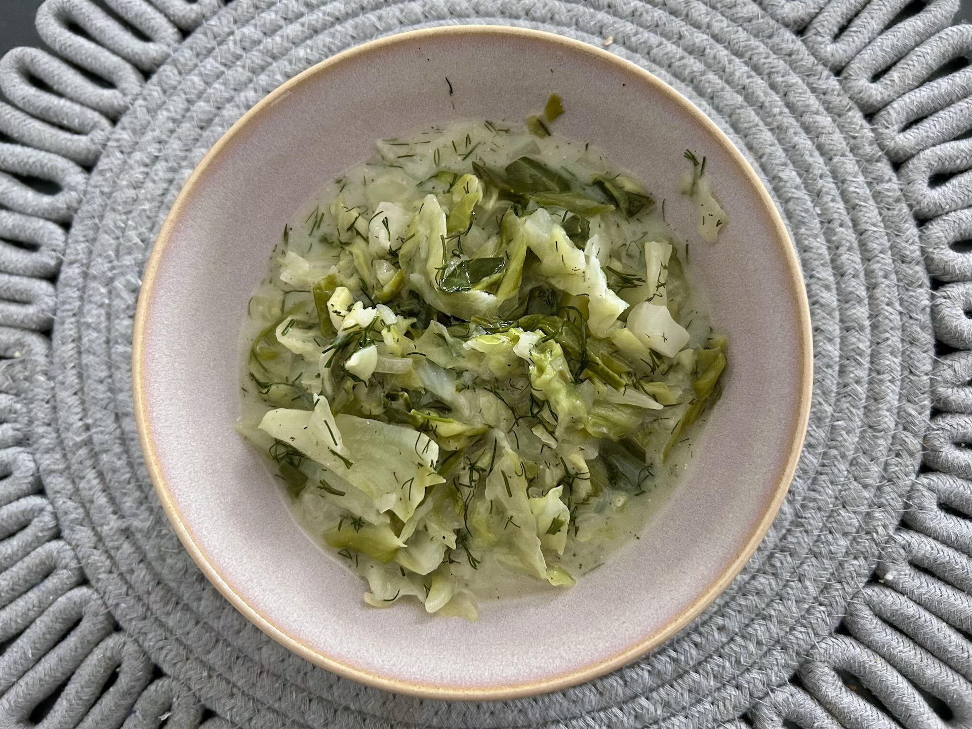 Młoda kapusta zasmażana z koperkiem i śmietaną