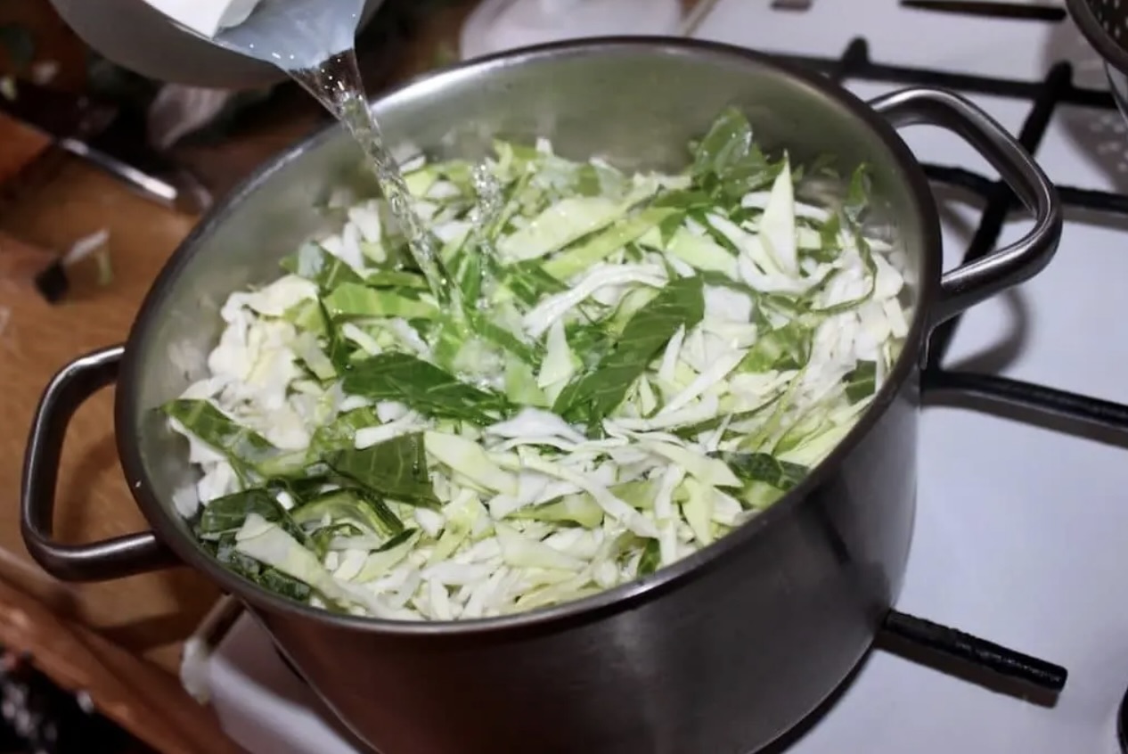 Odcedzanie: Gdy kapusta jest miękka, odcedź ją, pozostawiając w garnku z kapustą około pół litra wody z gotowania. Dodatkowo, zachowaj szklankę wody z gotowania kapusty „luzem”. Odcedzoną kapustę odstaw na bok.