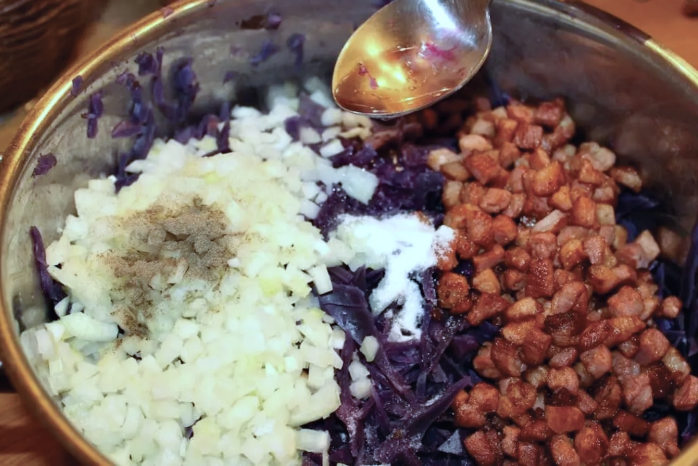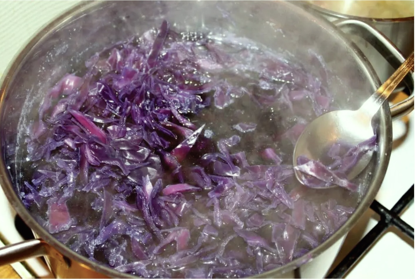 Zakwaszanie: Wlej 2 łyżki octu spirytusowego. Zobaczysz, jak kapusta zmieni kolor pod wpływem octu.