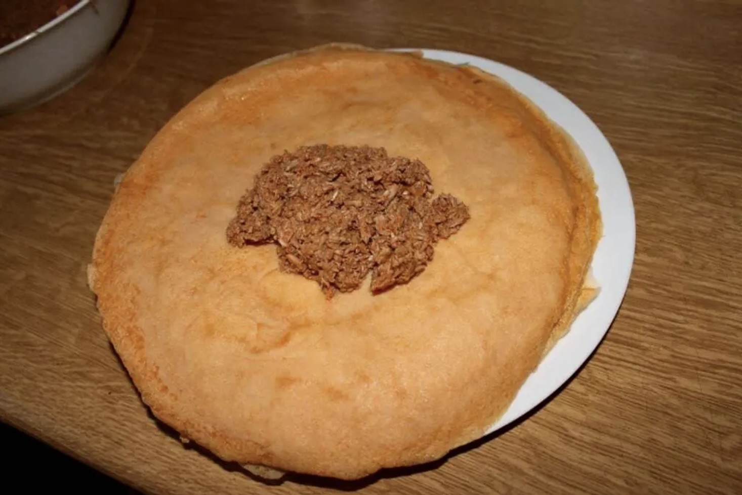 Na środek każdego naleśnika nałóż farsz mięsny.