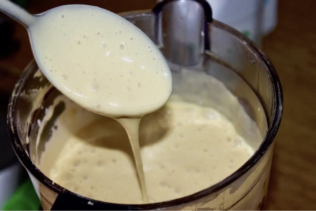 2. Miksowanie: Zmiksuj wszystkie składniki na jednolite, dość luźne ciasto. Jeśli ciasto jest zbyt gęste, dolej nieco mleka i ponownie zmiksuj.