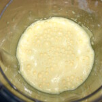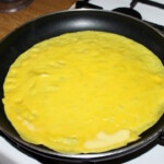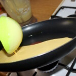 Ciasto: Wymieszać w misce mleko, mąkę, sól, cukier, kurkumę i jajka, aż do uzyskania lekko lejącej konsystencji.