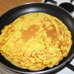 Smażenie: Rozsmarować odrobinę masła na rozgrzanej patelni. Wlewać ciasto chochlą i obracać patelnią, aby ciasto szybko pokryło dno. Smażyć krótko z obu stron.