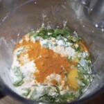 Tuż przed zmiksowaniem dodaj 1 łyżeczkę mielonej kurkumy i dużą garść świeżych liści bazylii (im więcej, tym lepiej).