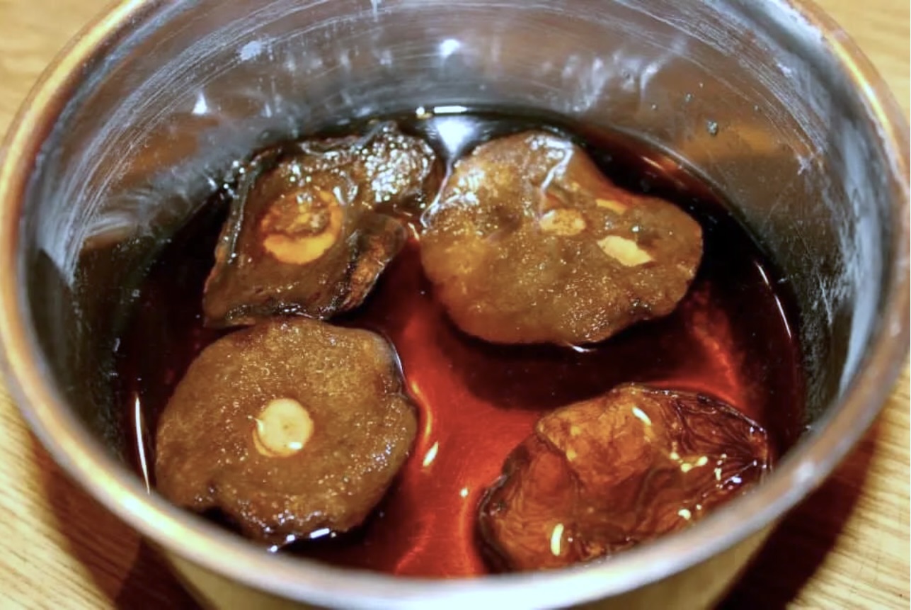 Grzyby: Mocz suszone grzyby we wrzątku przez około 30 minut, a następnie ugotuj je do miękkości (około pół godziny).
