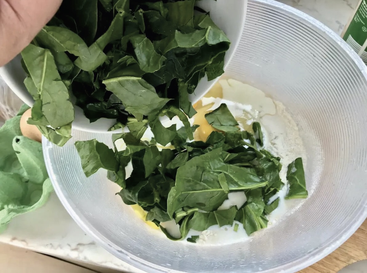 Posiekaj liście szpinaku i umieść je w osobnym naczyniu.