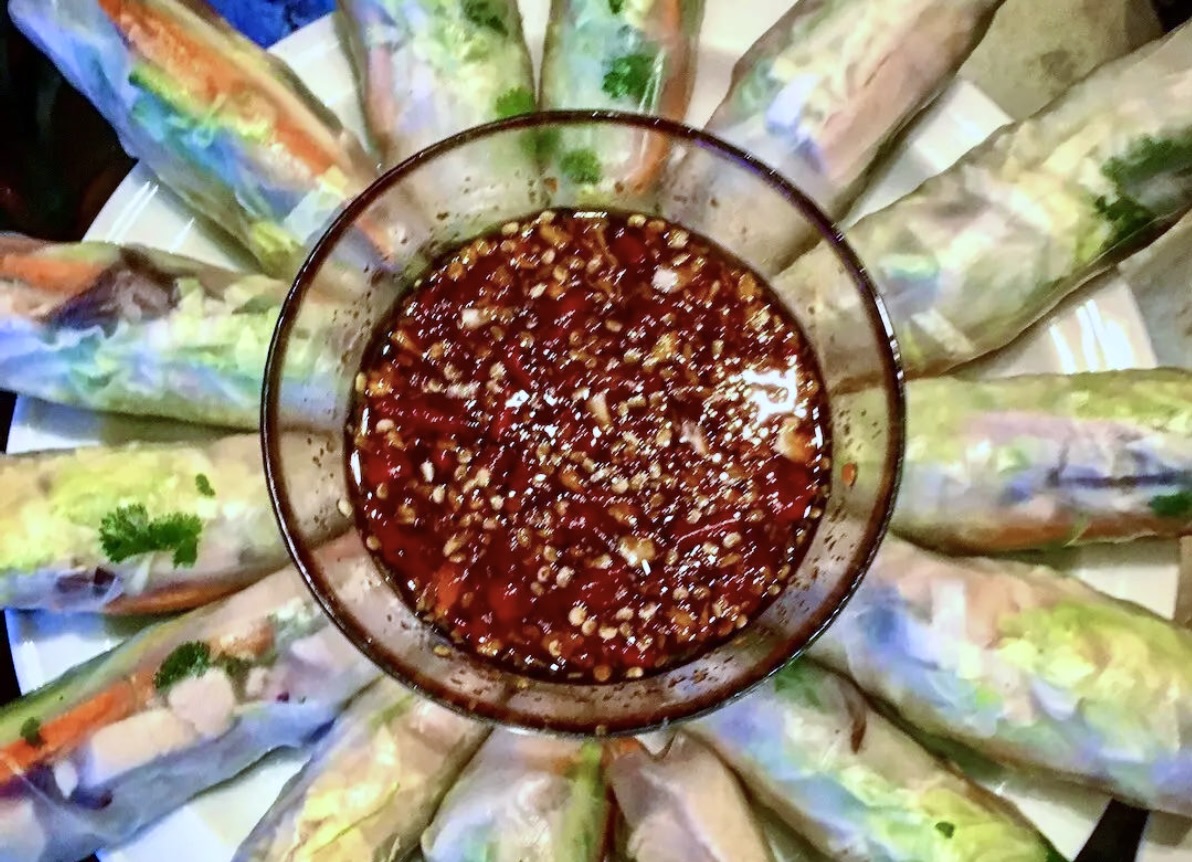 Idealnie pasuje do sajgonek (zobacz przepis na sajgonki z kurczakiem). Podobnie jak sos słodko ostry. Rewelacja!