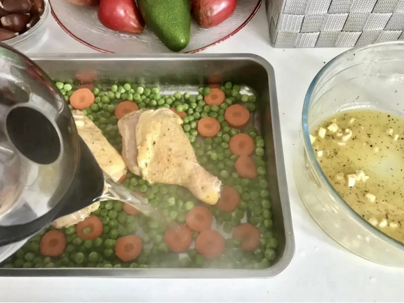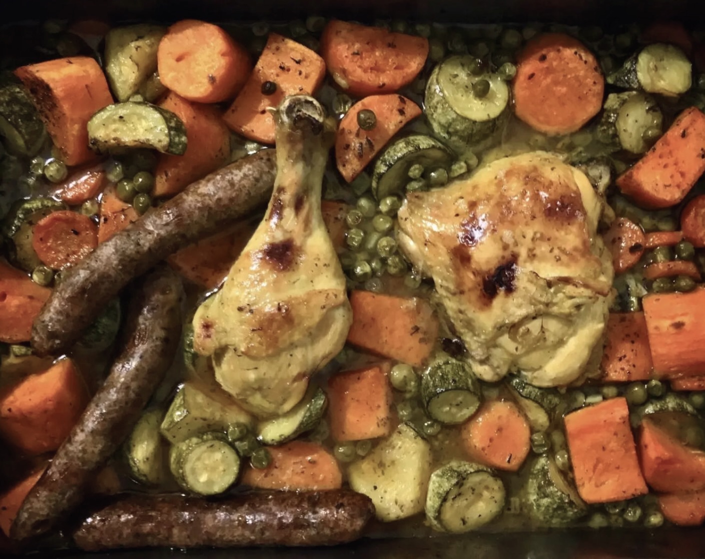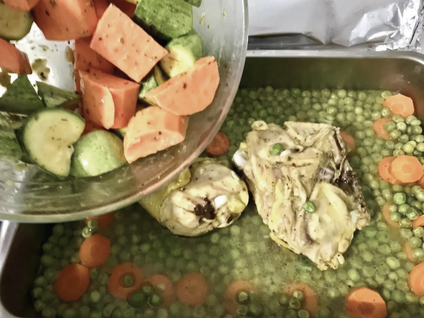 Pierwsze pieczenie (kurczak i groszek):