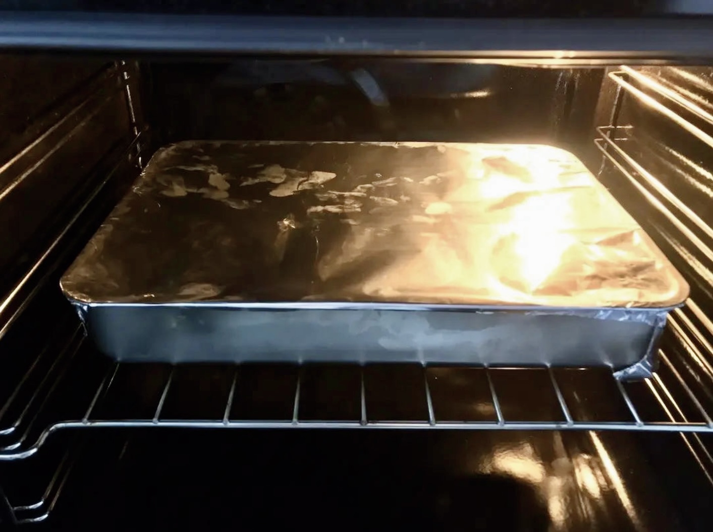 Szybko przykryj ponownie całość folią aluminiową.