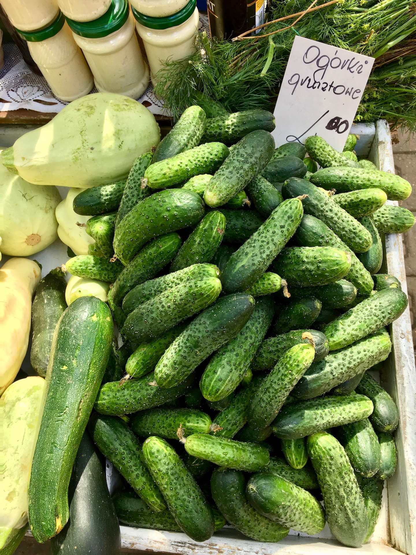 Ogórki: 1 kilogram świeżych ogórków gruntowych (jędrnych, twardych i o zbliżonym rozmiarze)
