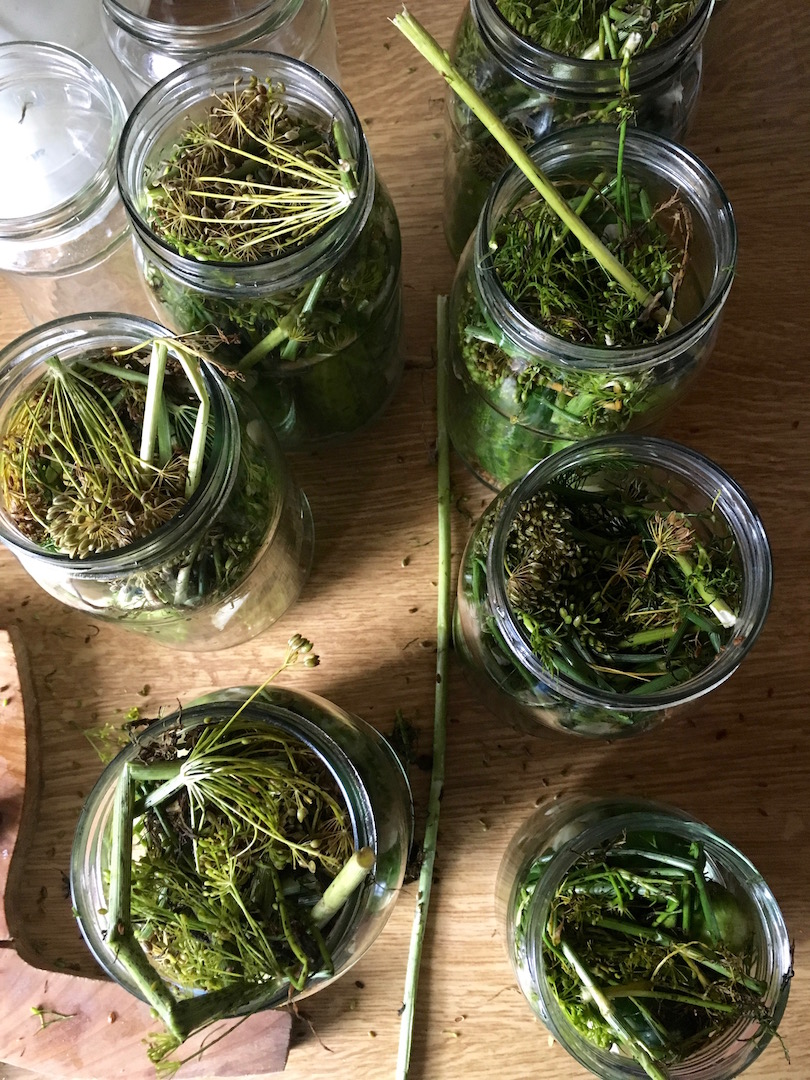 Czosnek: Kilka główek czosnku (5 do 8 ząbków na litrowy słoik)