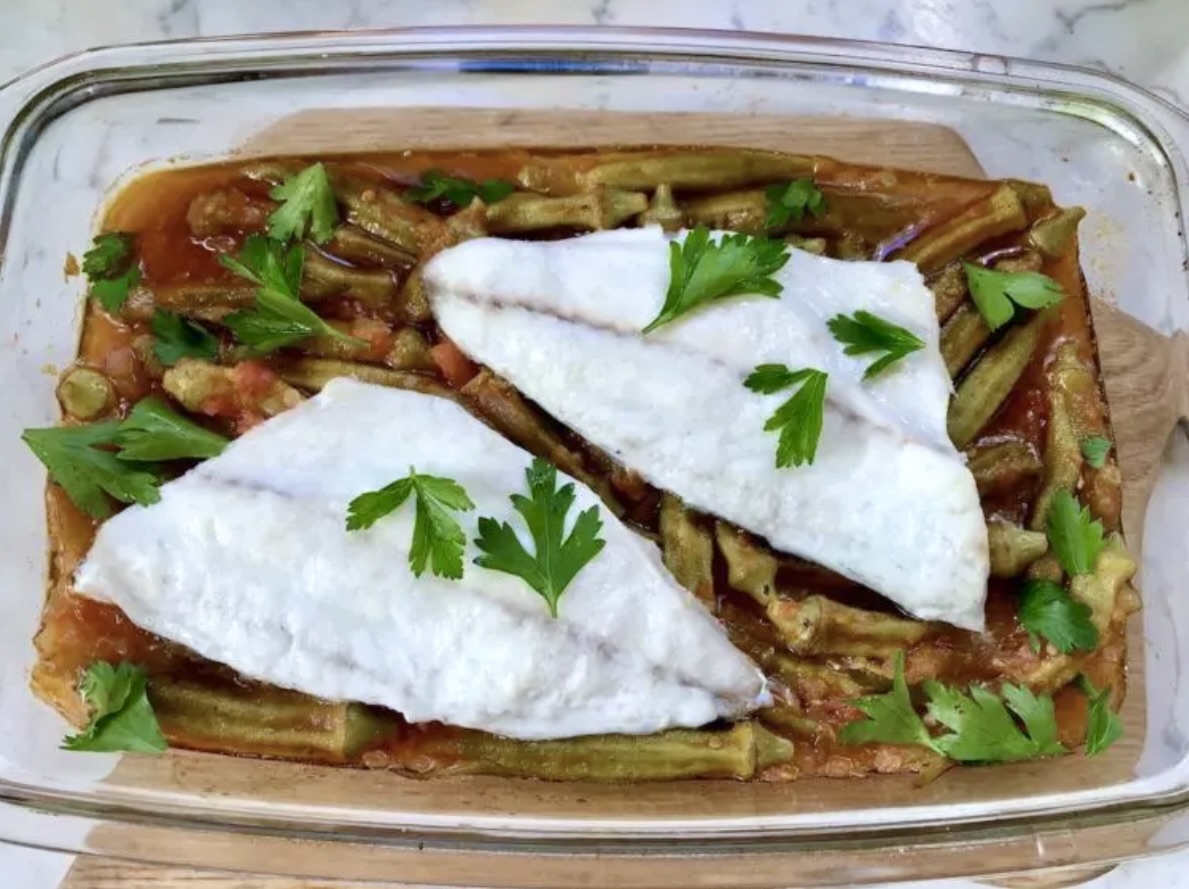 Okra duszona z pomidorami to bardzo smaczne i chętnie jadane danie w wielu krajach. Niestety w Polsce świeża okra wciąż jest mało dostępna, wiec siłą rzeczy jada się ją stosunkowo rzadko. Każdy jednak szanujący się wegetarianin czy weganin wie, że okra to bardzo ważne warzywo w jego diecie. W poniższym przepisie okra występuje w parze z dojrzałymi pomidorami, co musi gwarantować zdrowe i pyszne danie. Dodatkowo pieczony filet z dorady zgrabnie łączy wszystko w pełnowartościową i nietuzinkową całość. A to czyni okrę w pomidorach daniem wartym wypróbowania. Zachęcam.