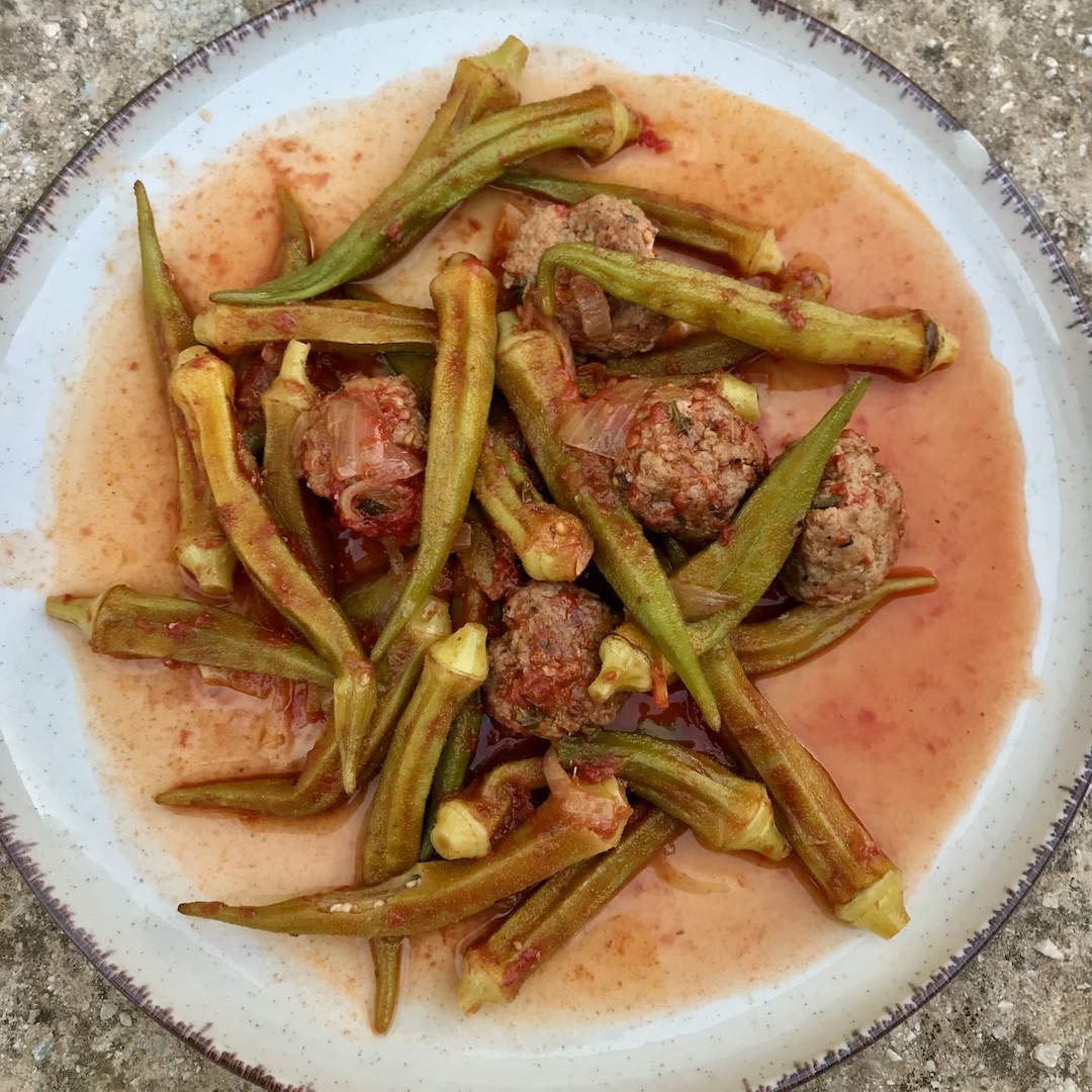 Okra w pomidorach z klopsikami