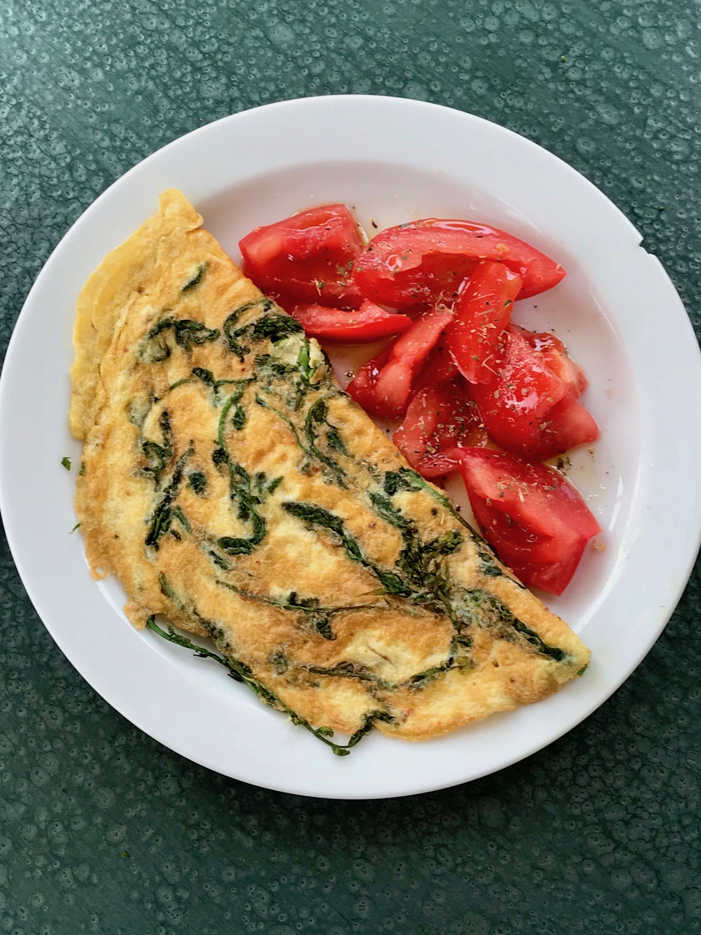 Podanie: Zetrzyj ser dojrzewający (im dłużej dojrzewający, tym intensywniejszy smak). Gdy omlet osiągnie pożądany stopień ścięcia, rozłóż na nim starty ser, a następnie od razu złóż go na pół, aby ser w środku zaczął się powoli topić. Podawaj z dodatkowym warzywem, świeżym pieczywem i szklaneczką wina.
