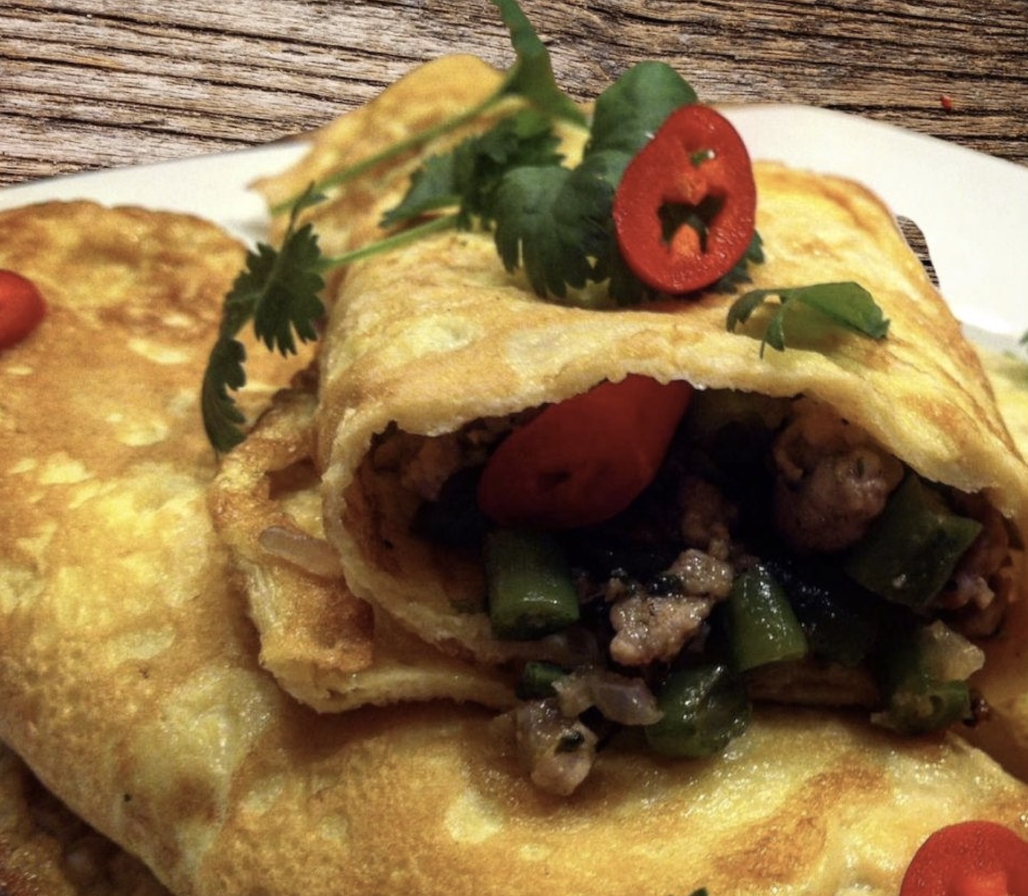 Omlet z wieprzowiną po tajsku to pyszności dobre zarówno na lunch, jak i na obiad. Farsz jest optymalny pod względem smaku, ale pamiętaj, że zawsze możesz dodać coś od siebie, bo kuchnia to nie dyktat. Bardzo lubię tego typu dania. Robi się je stosunkowo szybko, a ich podstawą są jajka, które po prostu uwielbiam. Może nie jestem obiektywny, bo co bym do jajek „wsadził” to zjem ze smakiem, ale te tajskie omlety z wieprzowiną naprawdę są wyjątkowe. To kolejne tajskie danie, które udowadnia, że tamtejsza kuchnia jest niezwykła prosta. No i okazuje się, że 150 gramów mięsa jest absolutnie wystarczające nawet dla trzech osób.