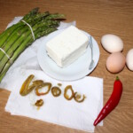 Omlet ze szparagami to kolejna moja propozycja dania z zastosowaniem zielonych szparagów. To proste i niezwykle smaczne danie z ostrym akcentem, dzięki „dorzuceniu” papryczki chili i jalapeno powinno smakować każdemu. Oprócz szparagów zastosuj takie składniki, jakie lubisz. Ja jednak proponuję Tobie wypróbować mój przepis, jest sprawdzony. To znakomita pozycja na śniadanie, lunch, obiad i kolację, czyli zawsze i dla każdego. Gorąco zachęcam do wypróbowania, ważne, by ser feta i masa jajeczna w środku osiągnęły podobną, półpłynną konsystencję.