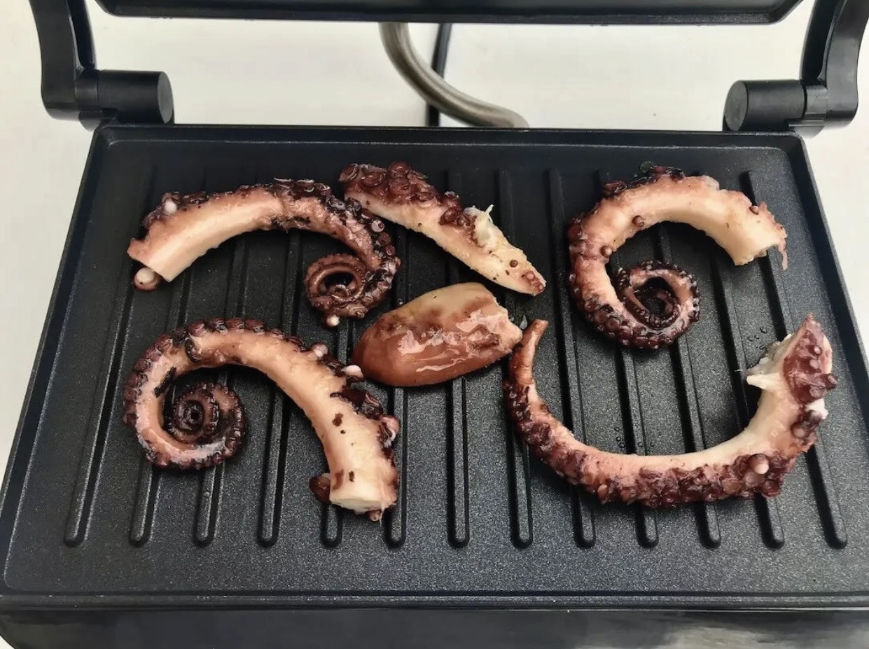 Ośmiornica z grilla, jaką otrzymacie w greckiej tawernie zwykle rozczarowuje przeciętnego turystę. Grecy bowiem wrzucają na ruszt surową ośmiornicę i jak się możecie domyślać nie ma szans, aby na tym ruszcie stała się ona idealnie miękka. A tego właśnie pragną turyści. Tak przyrządzona ośmiornica z grilla to esencja smaku, ale nie czarujmy się, trzeba mieć dobre i zdrowe uzębienie, aby to móc docenić. Jest jednak na to złoty środek. Ośmiornicę należy najpierw ugotować, a następnie wrzucić na ruszt. Może nie będzie to klasyka, za to smaku z pewnością nie zabraknie.