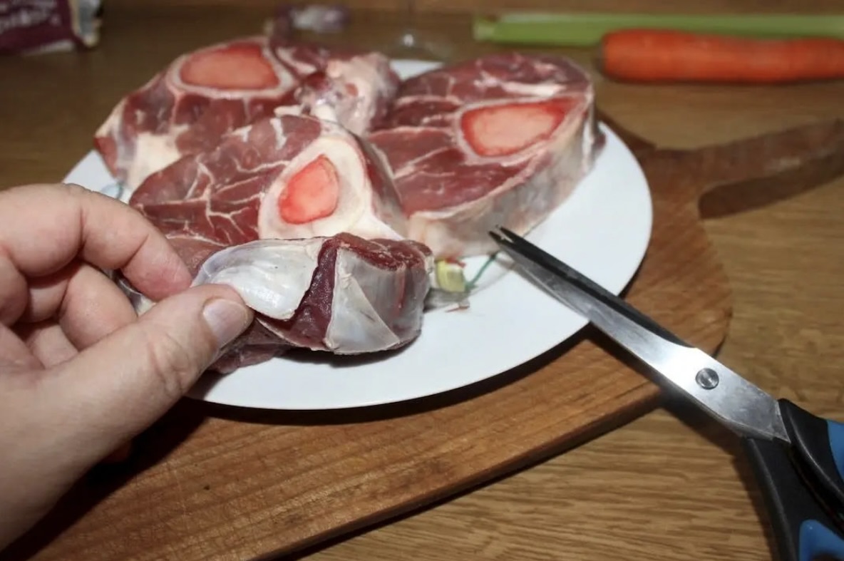 Umyj mięso pod bieżącą wodą, osusz ręcznikami papierowymi, a następnie natnij błonki na brzegach giczy, aby mięso się nie zdeformowało podczas obróbki.