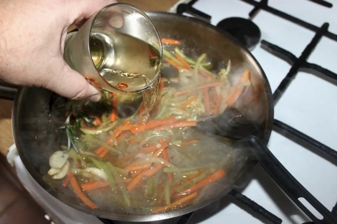 Wlej wino. Zwiększ gaz i poczekaj, aż alkohol odparuje.