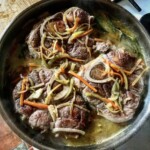 Zdejmij patelnię z gazu, włóż z powrotem mięso i polej je sosem. Przykryj i pozostaw na kilka minut, aby mięso się ogrzało.