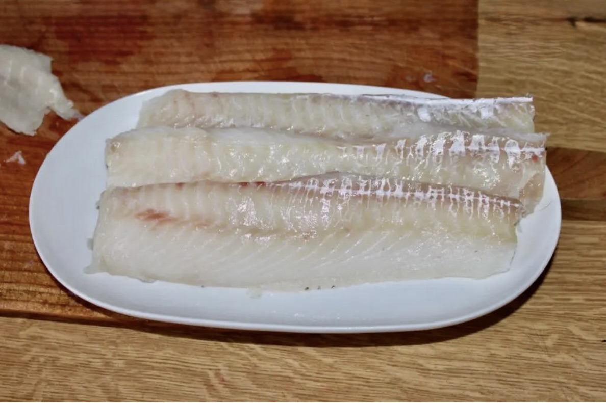 Podziel filety z dorsza (lub łupacza, najlepiej bez skóry) na polędwiczki i pozostałe kawałki.