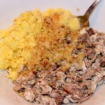 Kurczak: Drobno posiekaj ugotowane mięso z kurczaka (np. z rosołu).