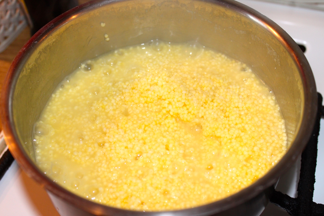 Kasza jaglana: Przepłucz kaszę jaglaną, aby pozbyć się goryczki. Do garnka wlej 2 szklanki wrzącej, lekko osolonej wody, a następnie wsyp 1 szklankę kaszy. Gotuj kaszę około 10 minut, aż woda niemal całkowicie wyparuje. Następnie przykryj garnek pokrywką, wyłącz gaz i pozostaw na palniku na kilkanaście minut, aby kasza „doszła” i napęczniała.