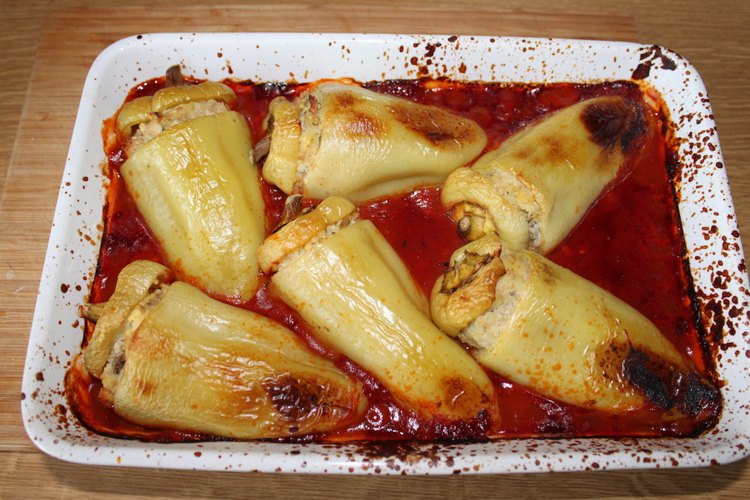 Pieczenie: Zapiekaj w piekarniku nagrzanym do 180°C przez około 1 godzinę i 15 minut, aż papryka będzie „al dente” (lub dłużej, jeśli wolisz bardziej miękką).
